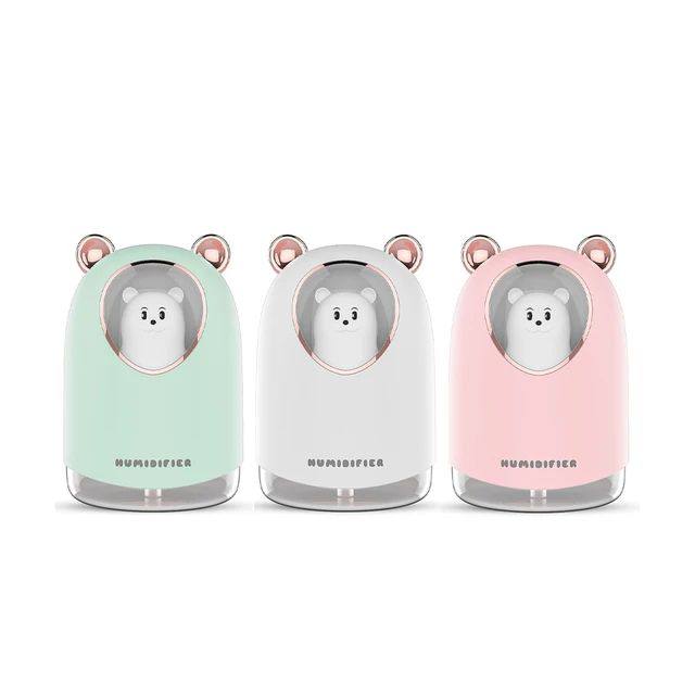 بخور سرد خرس سفید کد ۱۶۷ با طراحی فانتزی، در سه رنگ صورتی، سبز و سفید، مناسب برای ایجاد هوای مطبوع و تازه در اتاق، محیط کار و سالنهای کوچک.