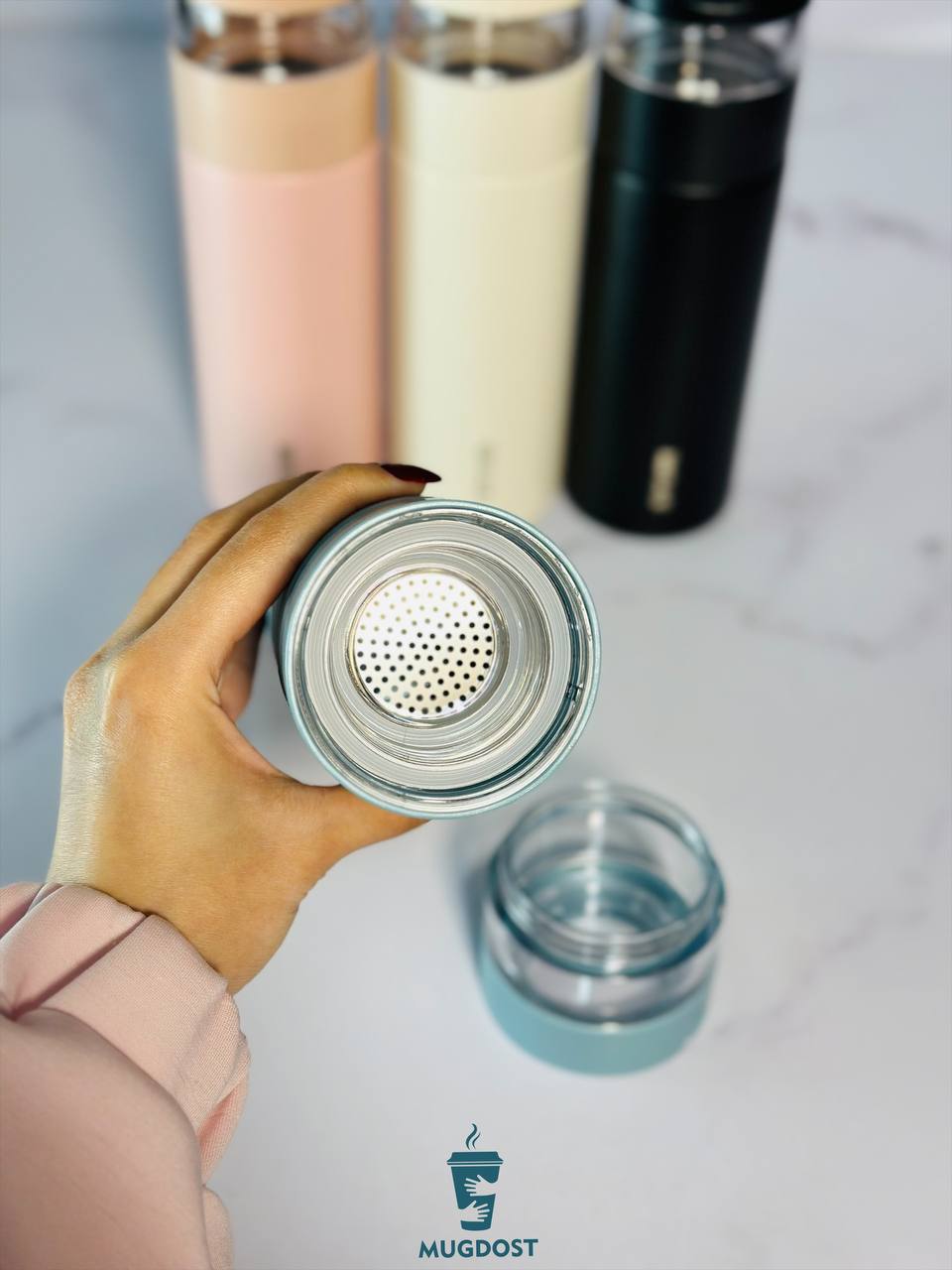 وجود توری مخصوص دمنوش یکی از مزیتهای اصلی این مدل بهشمار میآید. شما میتوانید دمنوشهای گیاهی، چای یا ترکیبات دلخواه را مستقیم داخل ماگ دم کنید و بدون نیاز به صافی جداگانه از نوشیدنی صاف و خوشطعم لذت ببرید. درب پیچی کاملاً کیپ عمل میکند و مانع نشت نوشیدنی میشود. همچنین دستگیره طراحیشده برای این ماگ، حمل آن را راحتتر میکند و کنترل بهتری هنگام استفاده میدهد.
