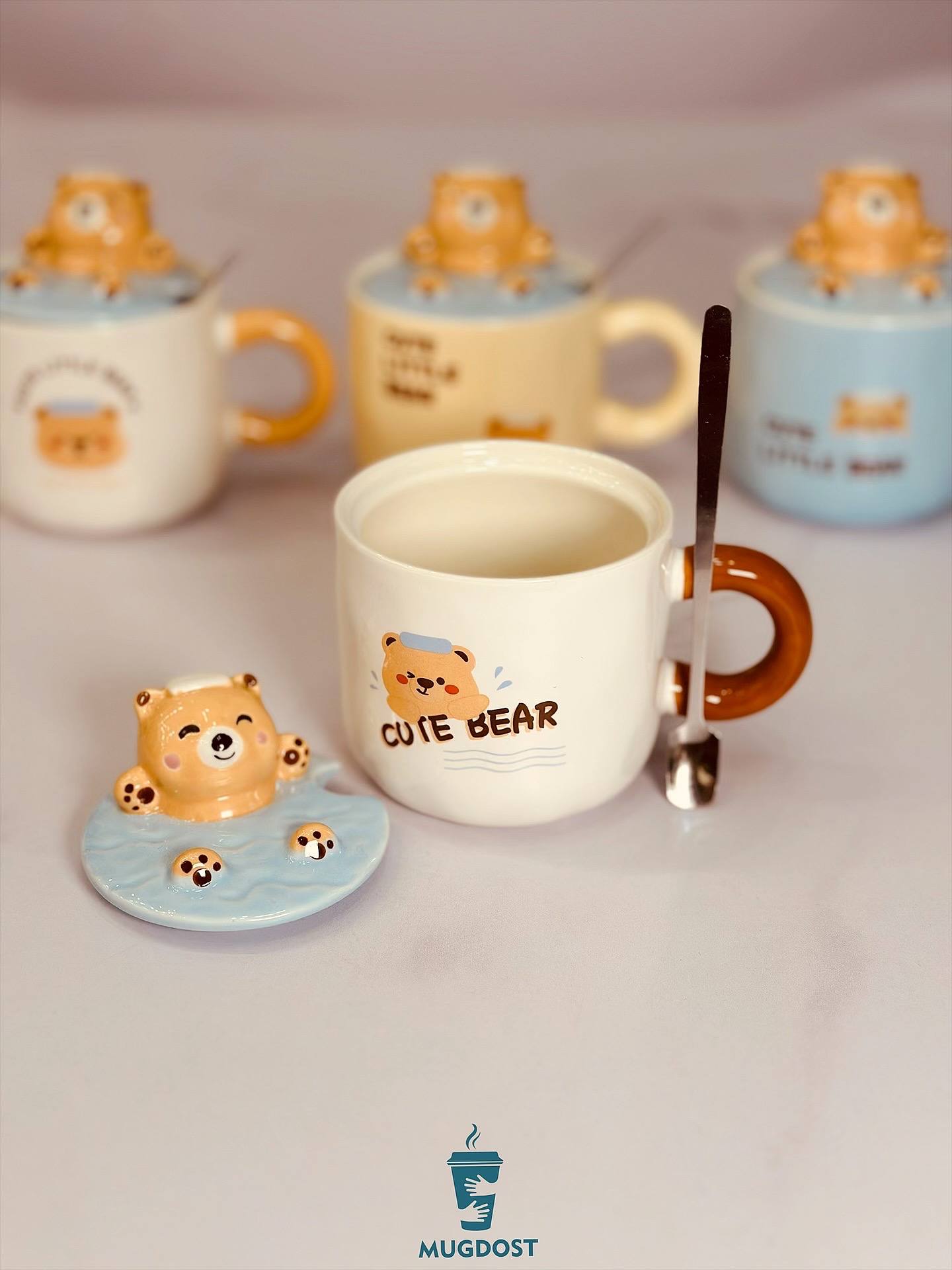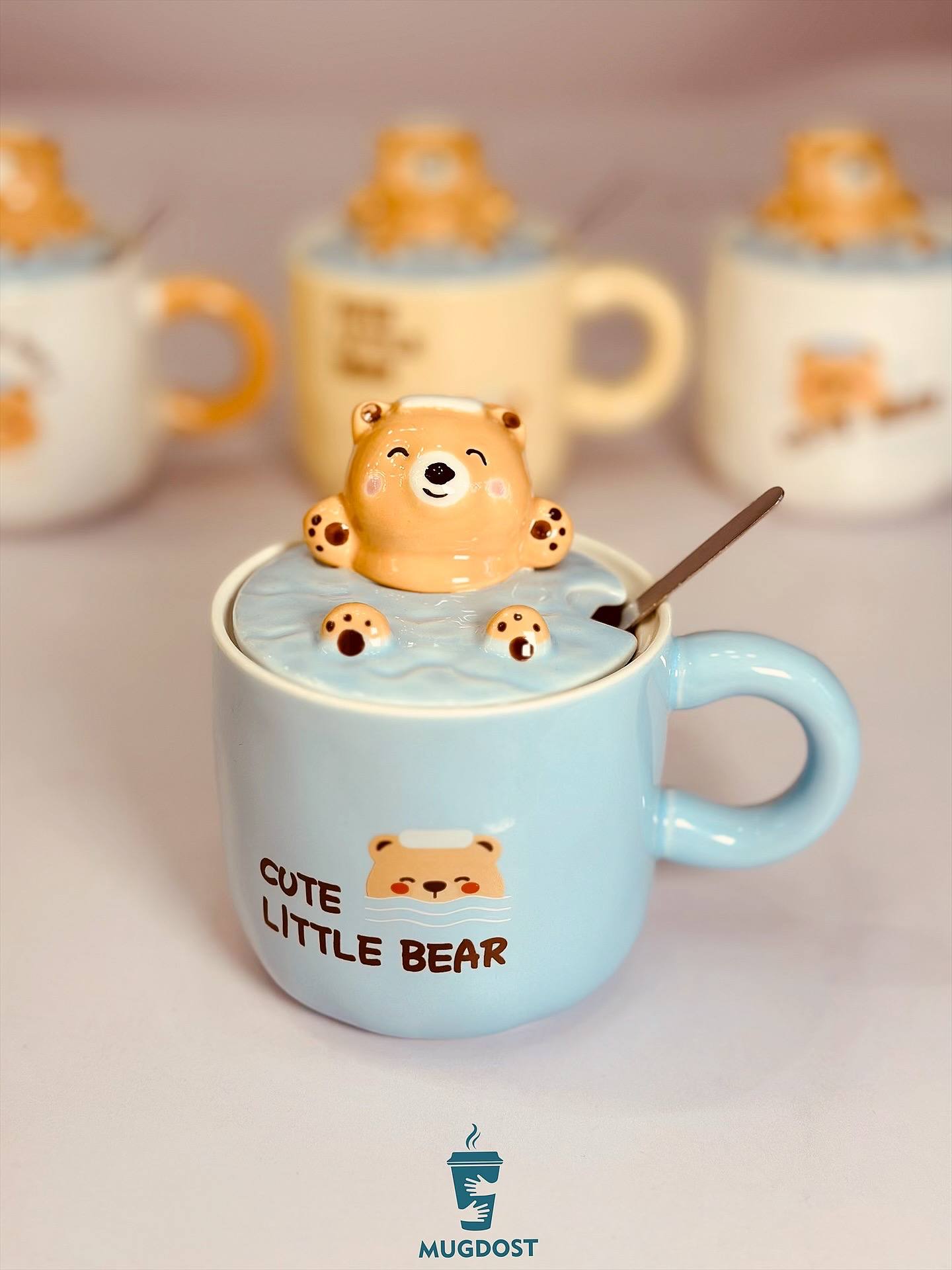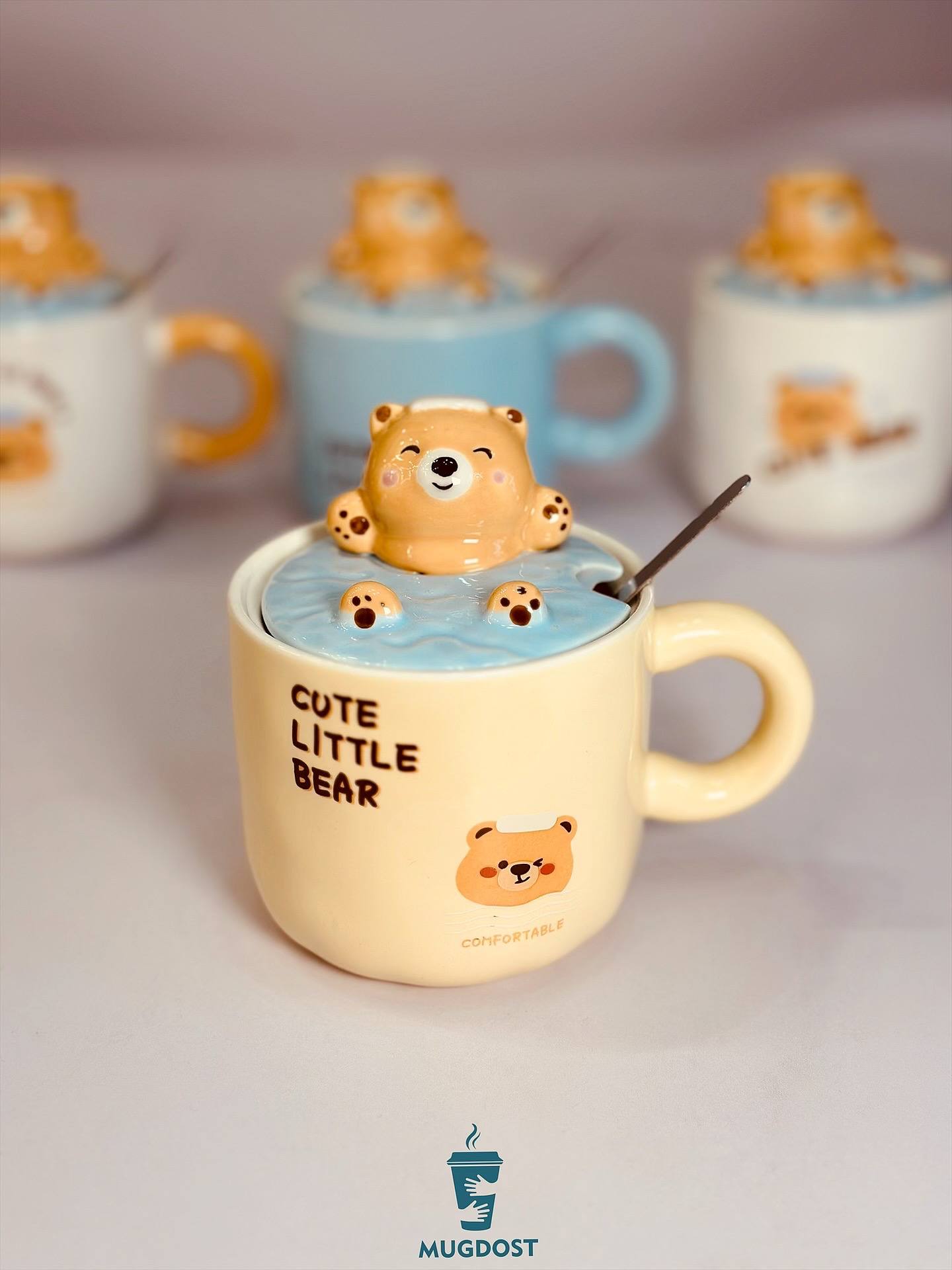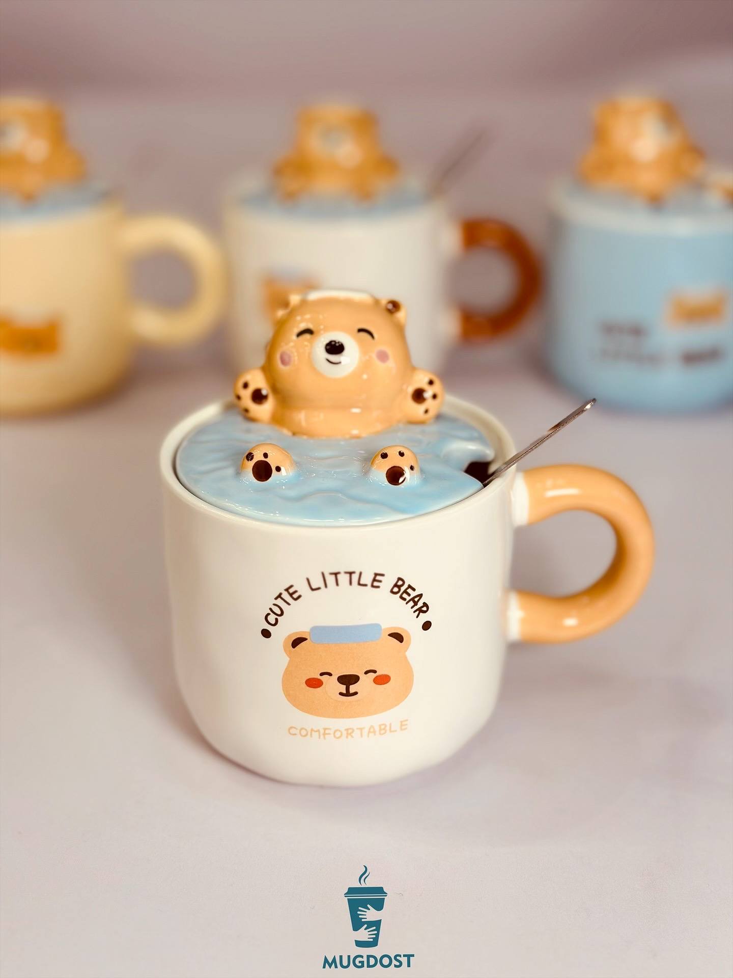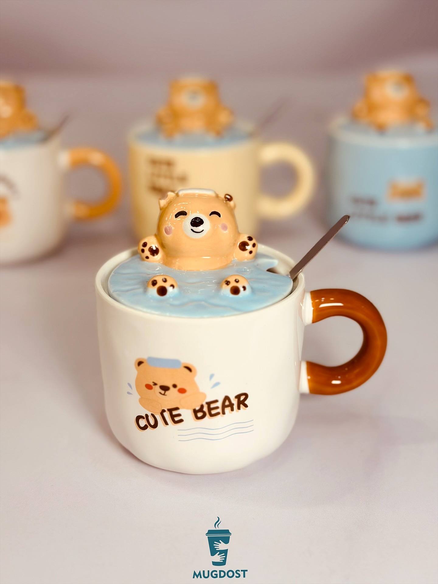 ماگ خرس شناور سرامیکی با حجم ۳۵۰ میل، دارای درب سرامیکی و قاشق استیل. قابل استفاده در ماشین ظرفشویی و مایکروفر. طراحی شیرین و فانتزی.