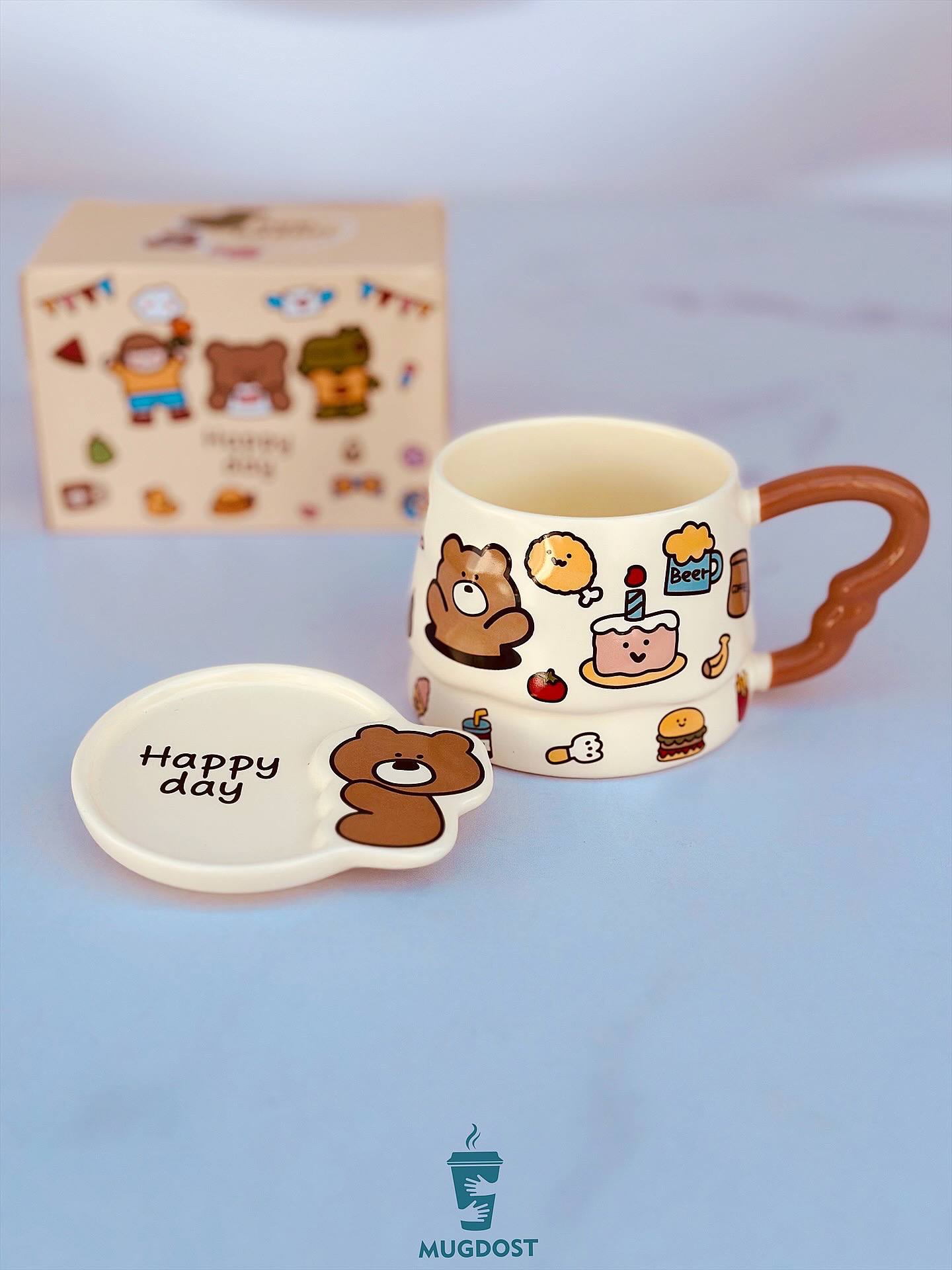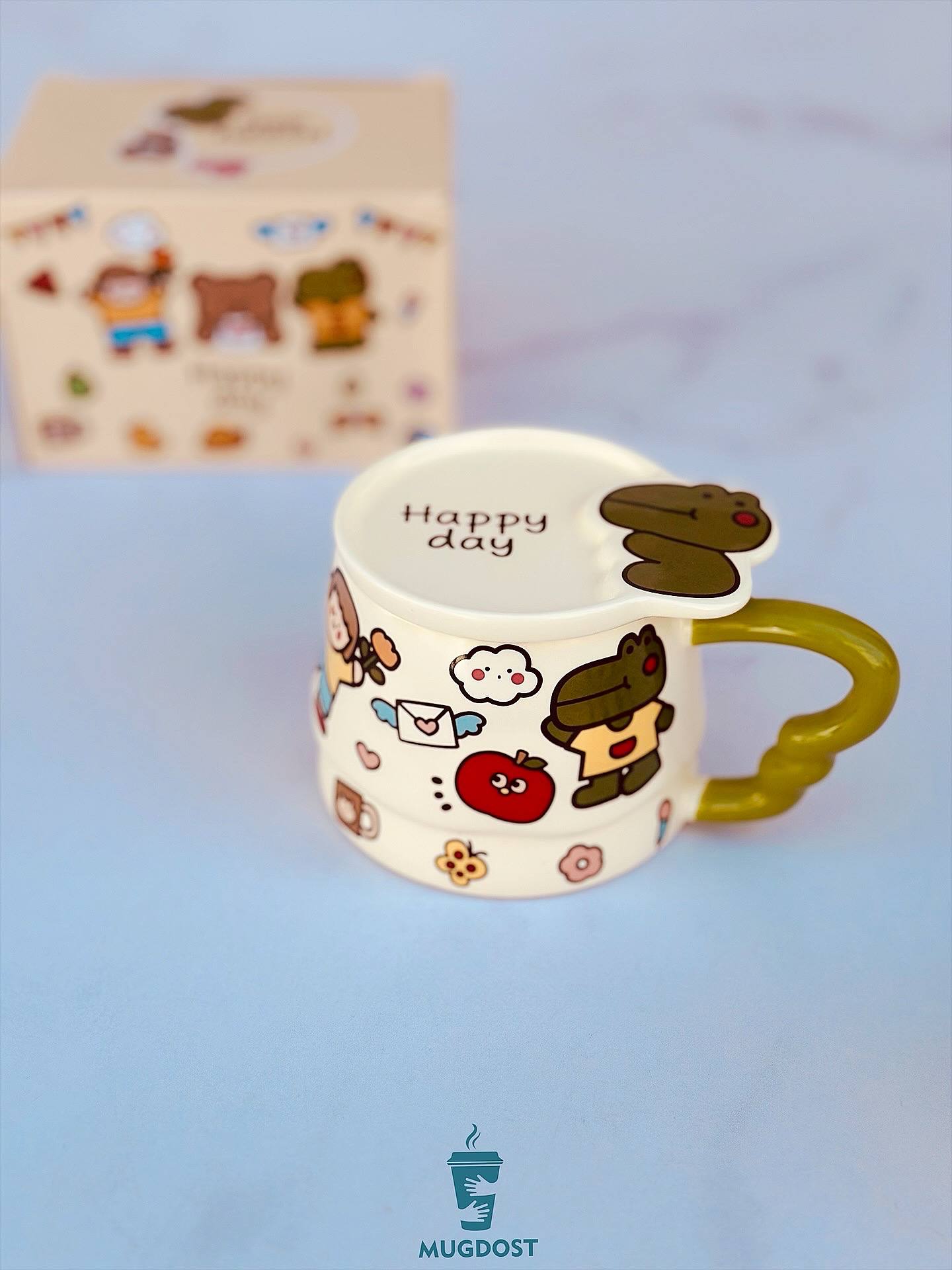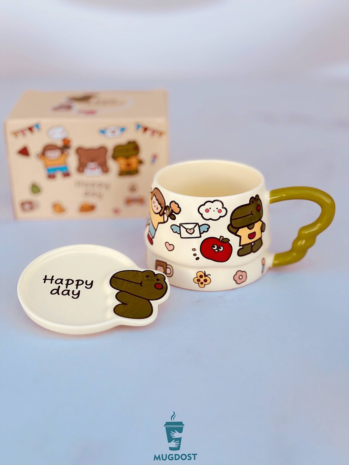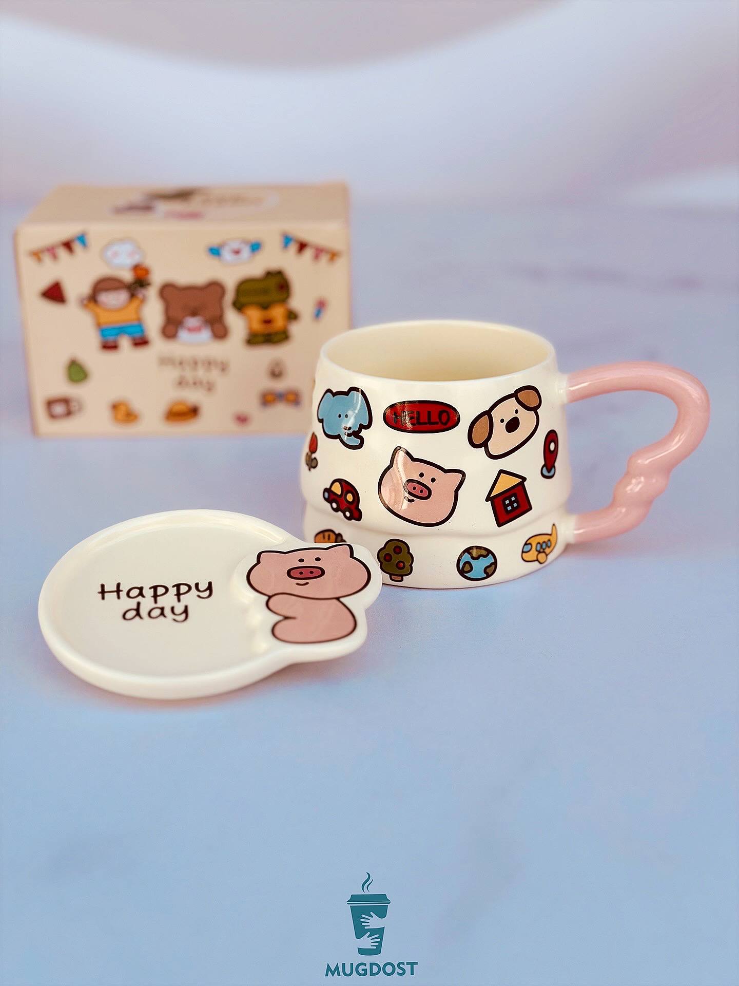 ماگ و بیسکوئیت خوری استیکر از جنس سرامیک با لعاب درجه یک، دارای درب بیسکوئیت خوری و چاپ فانتزی دور تا دور. قابل استفاده در ماکروفر و ماشین ظرفشویی، در ۳ طرح متنوع، حجم ۴۰۰ میل.